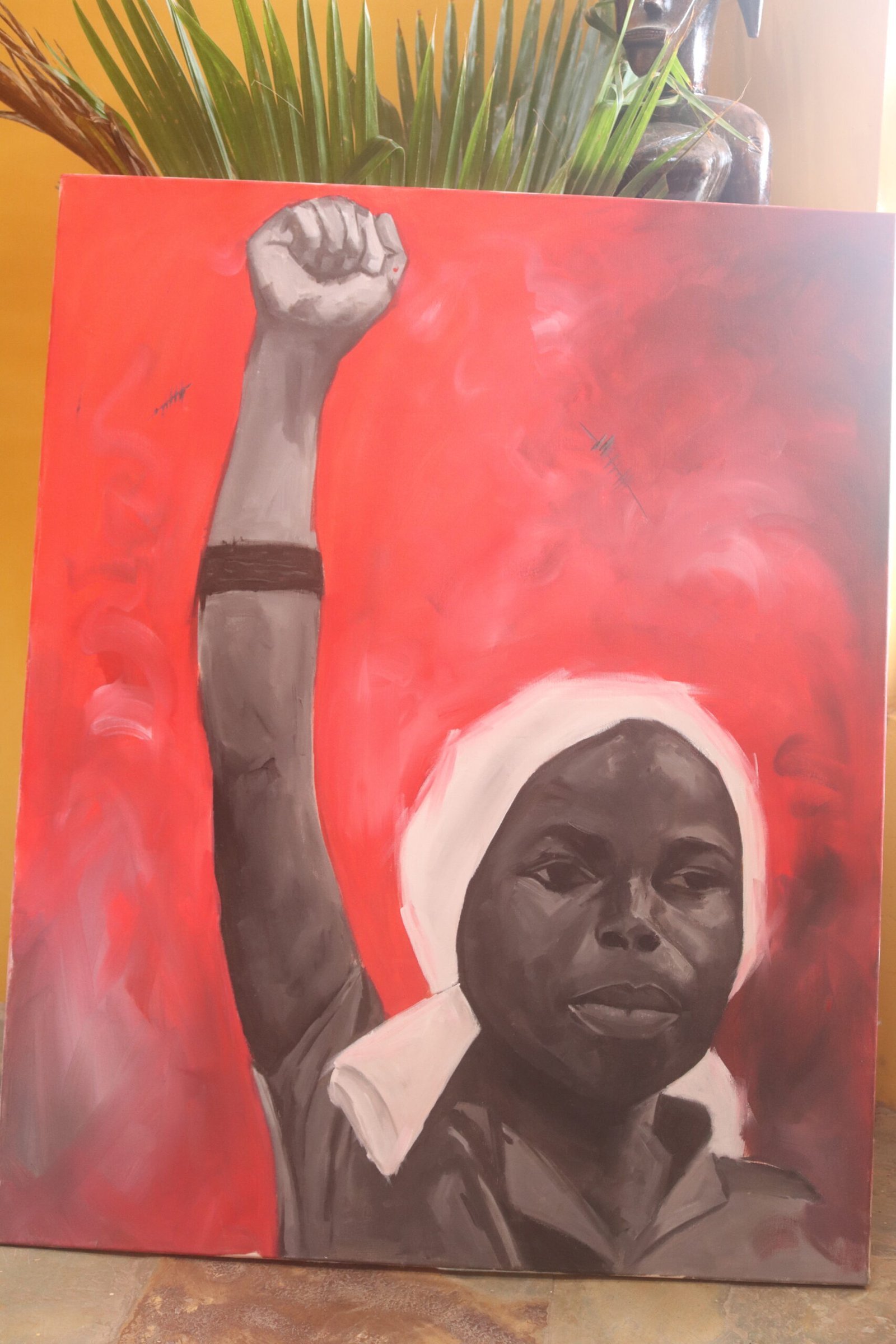 Experience the raw power and emotional depth of this striking protest art painting. Featuring a figure defiantly raising a clenched fist against a commanding red background, this piece vividly symbolizes strength, resilience, and the fight for justice. Perfectly suited for both home and office decor, this expressive artwork will undoubtedly become an impactful focal point in any space. Expertly crafted on a 24×36 inch canvas with vibrant acrylic colors, this hand-painted masterpiece radiates boldness and determination.