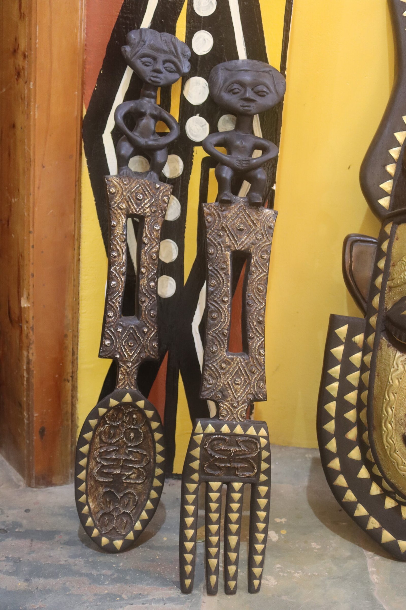 Discover the exquisite beauty of African culture with our handcrafted wooden tribal wall art. This stunning piece features decorative spoons and forks adorned with intricate tribal patterns, perfect for infusing your home decor with cultural elegance. It’s carved from high-quality wood finished in rich, natural hues. Transform any room with this extraordinary piece of art that speaks volumes about craftsmanship and heritage.