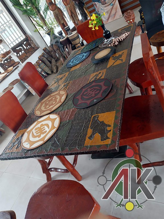 Transform your dining room with this exquisite Decorative Wooden Dining Table Set. Showcasing a distinctive mosaic wood design with intricate patterns, this set is a true work of art. The sturdy and beautifully crafted wooden chairs add a touch of sophistication and durability to your space. Ideal for creating an inviting atmosphere, this dining table set is available in a variety of sizes and colors to perfectly complement your home decor. Elevate your dining experience with this stylish and functional piece.